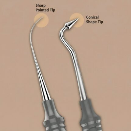 High-precision composite modelling instrument with ultra-sharp conical and pointed tips, designed for detailed anatomical sculpting in anterior and posterior restorations.