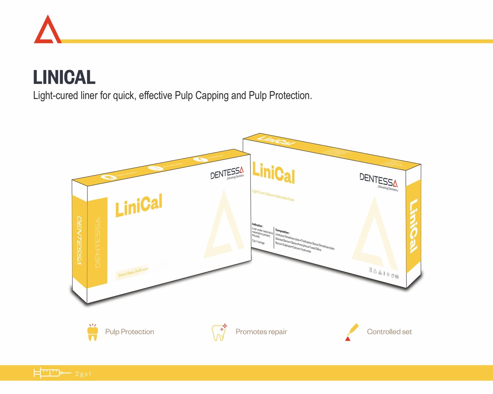 LINICAL is a light-cured calcium hydroxide liner designed for efficient pulp capping, pulp protection, and lining in deep cavity preparations. It is indicated for use under composites, amalgams, and glass ionomer cements, providing reliable protection of the dentin-pulp complex during restorative and endodontic procedures.